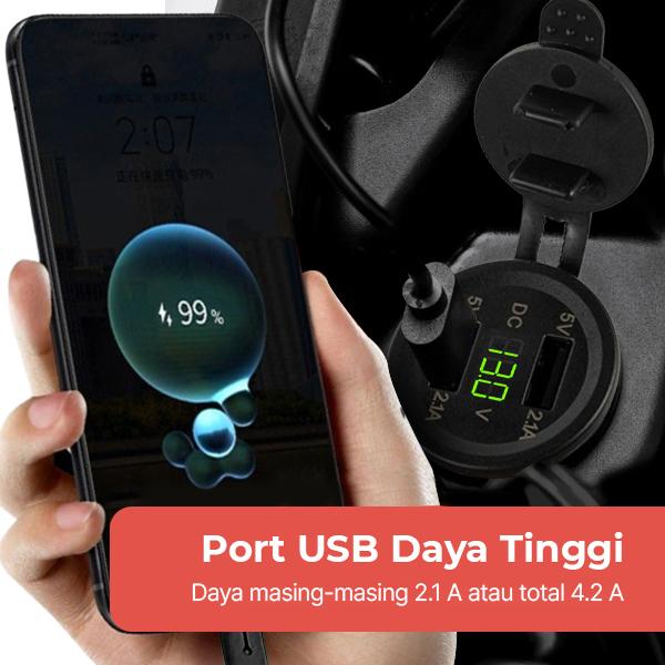 Usb Charger Motor 2 Port 4.2A With Led Display Voltmeter - Y451 - Black