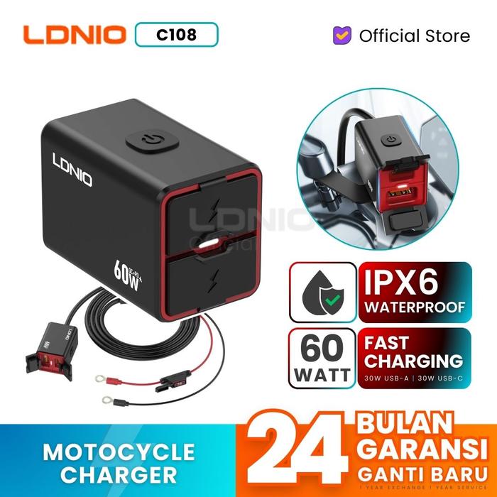 Ldnio C108 60W Fast Charger Pd+Qc3.0 Ipx6 Waterproof Motorcycle Phone Charger