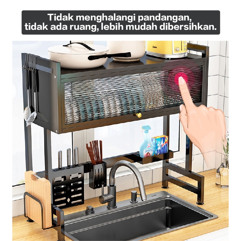 E-TIFE Rak Piring Wastafel Dapur Stainless Steel Multi-fungsi Dengan Penutup Rak Piring Tertutup