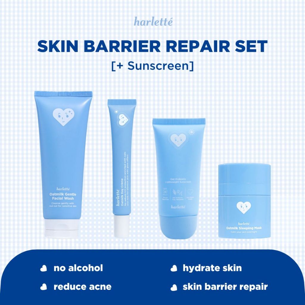 Harlette Oatmilk Bundle SUNSCREEN 4 PRODUK untuk Kulit Oily Kombinasi Dan Acne Prone Mencerahkan Bpom Terlaris