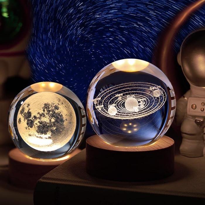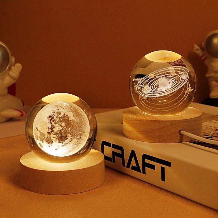 Lampu Buat Kamar Tidur Lampu Hias Led Lampu Hias Kamar Tidur Hadiah Spesial Lampu Malam Bulan Bola Kristal Kayu - Ak-01