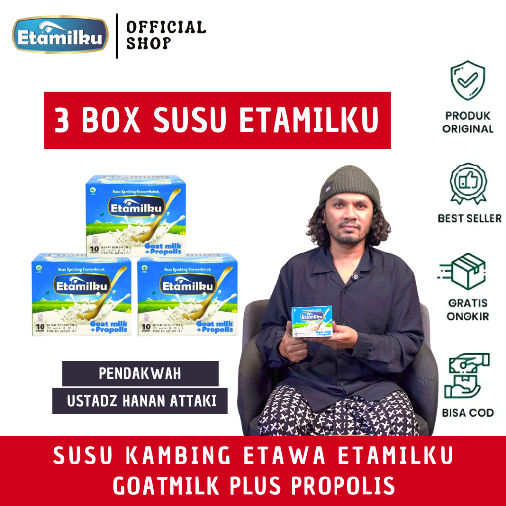 ETAMILKU - 3 BOX Susu Kambing Etawa Bubuk Plus Propolis - Atasi Masalah Pernafasan dan Nyeri Sendi