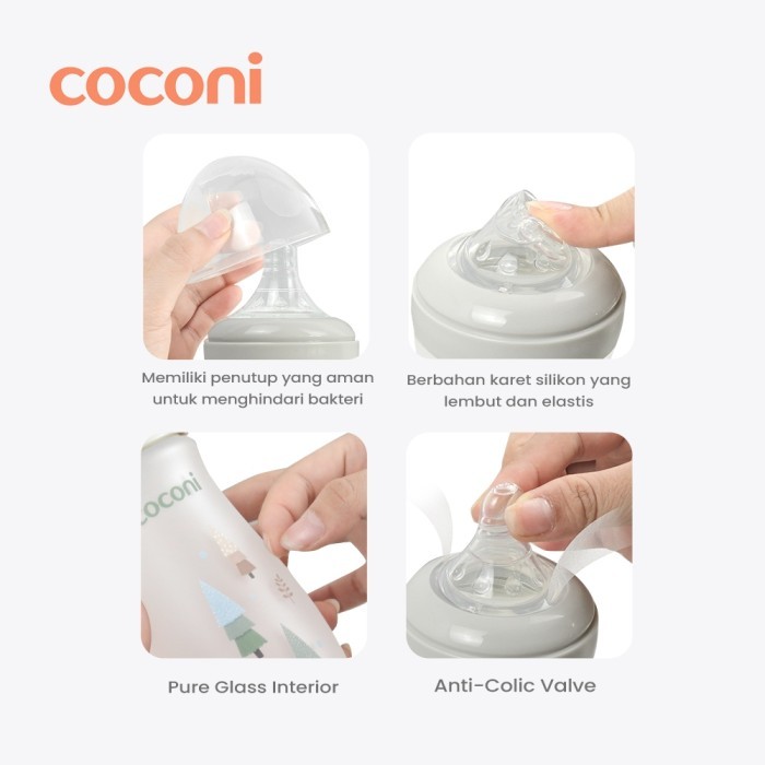 COCONI ComfortFeed Glass Bottle | Botol susu Dot Kaca Bayi Silikon Coating