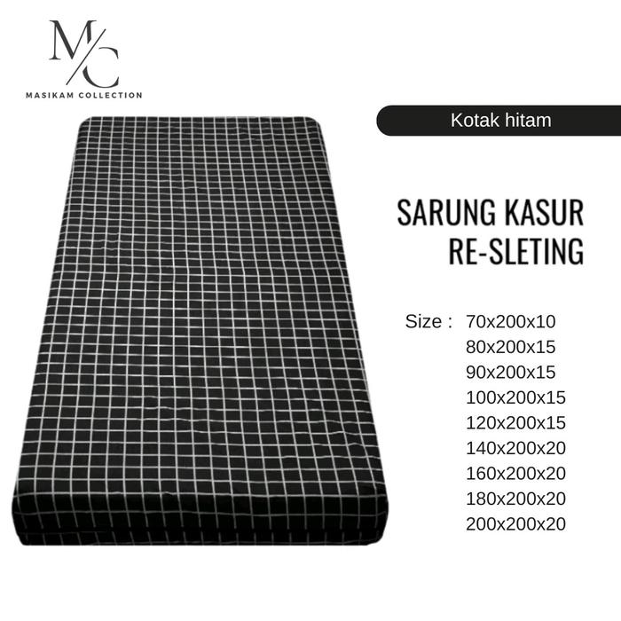 Sarung Kasur Busa Resleting Motif Kotak Bahan Polyester / Poly China All Size Murah Dan Terlaris - Kotak Hitam, 70X200X1
