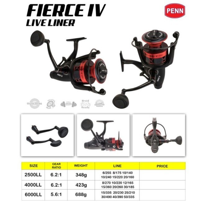 Penn Reel Spinning Fierce IV 1000 - 8000 & 2500LL - 6000LL 4Bb Full Metal Body Saltwater