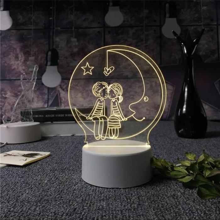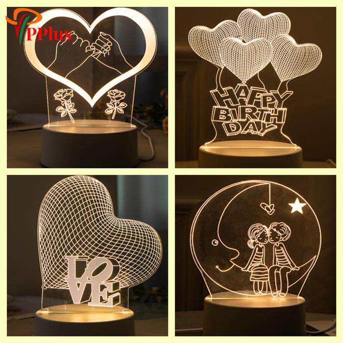 Pplus Bentuk Hati Lampu Akrilik 3D Malam Led/( Hangat)Warna Keren Lampu Kamar Aesthetic / Steker + Sakelar Lampu Tidur