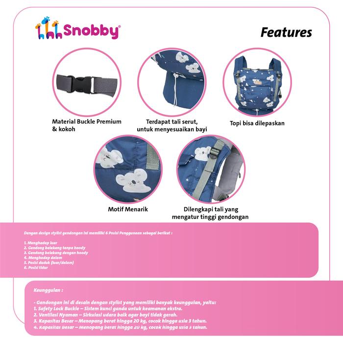 Snobby Gendongan Ssc M-Shape Bayi / Baby Millo Series - Abu