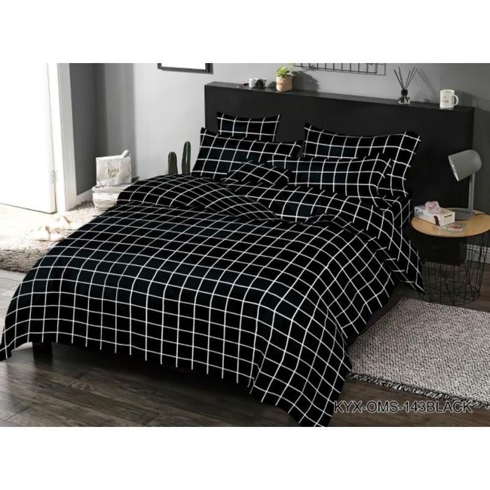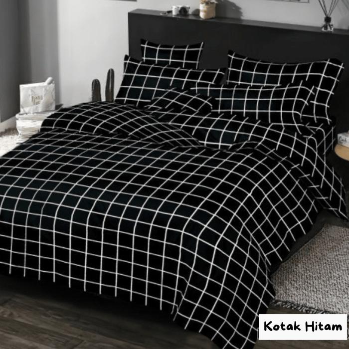 Sarung Kasur Motif Kotak Sprei Busa Resleting Homemade - Kotak Hitam, Sarkas Saja - 90X200X15