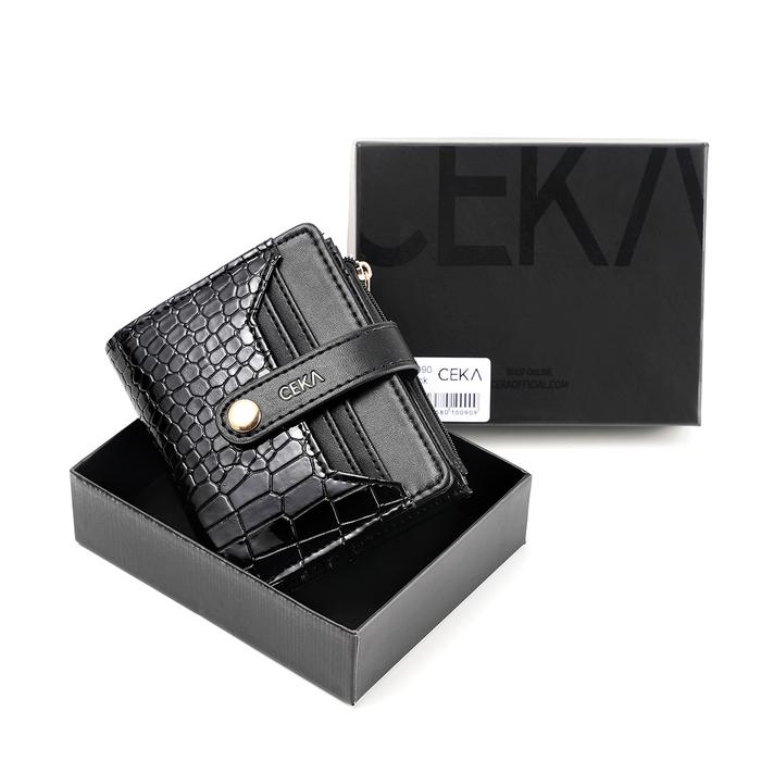 Ceka Dompet Wanita Kartu Dompet Uang Cewek Kecil Kulit Croco - Fenne Short Wallet - Black