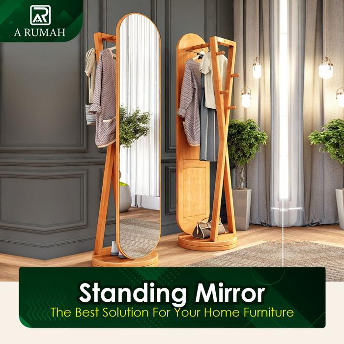 Bingkai Cermin Rias Kayu Solid Cermin Full Body Cermin Dinding Bingkai - Walnut