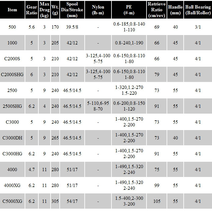 1000, 2500, C3000, C3000HG, 4000, 4000XG, C5000XG, 500, C2000SHG, C3000DH