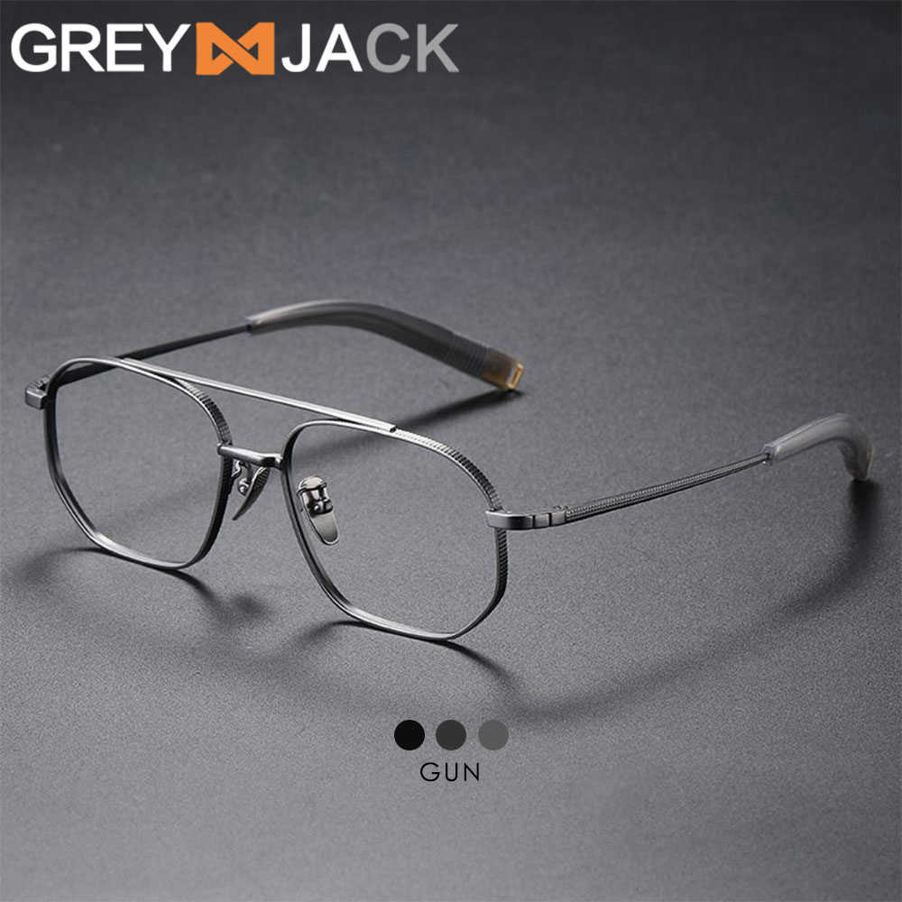 Grey Jack Frame Kacamata Bahan Titanium Sangat Ringam Model Kotak Aviator Keren Bisa Minus Antiradiasi Blueray Photocrom
