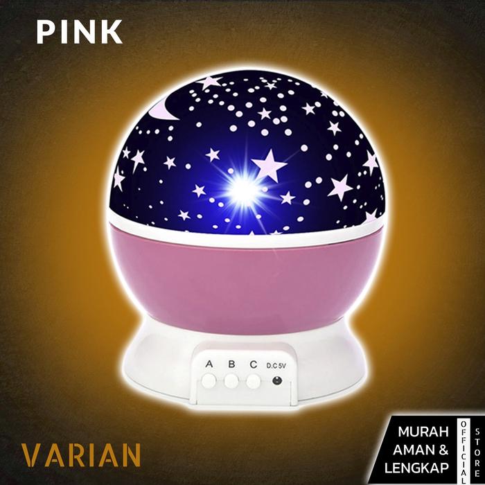 Lampu Tidur Proyektor Aesthetic 360 Led Kamar Karakter Bulan Bintang Rotasi 8 Mode - Pink