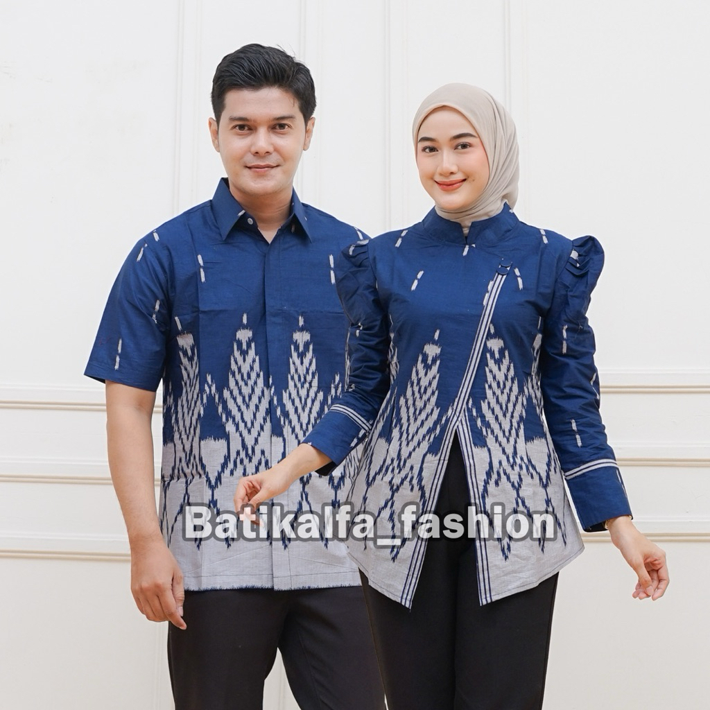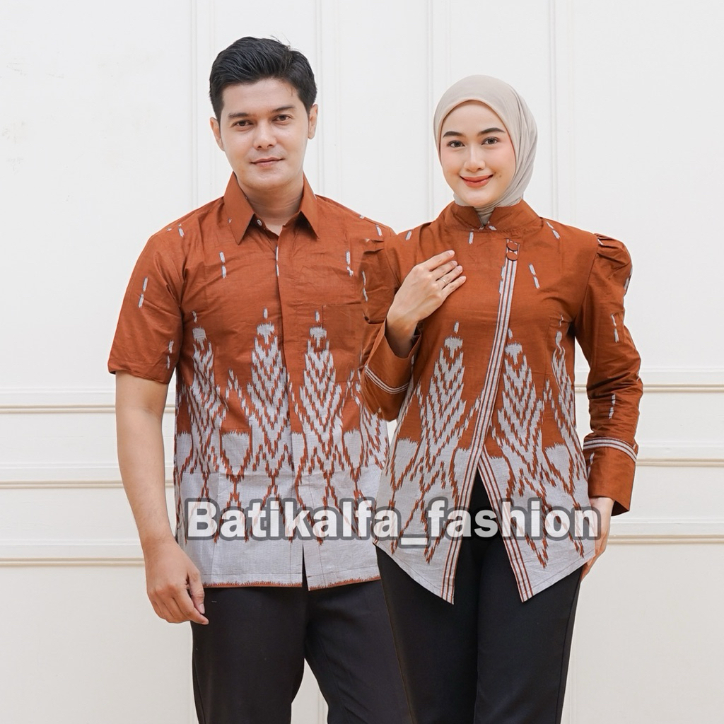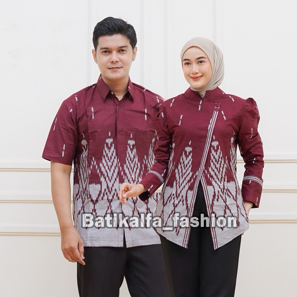 Batik Couple Terbaru Atasan Wanita Model Kebaya Janggan Lengan Puffy Bahan Katun Premium Motif Songket