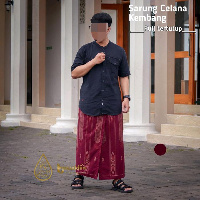 Taajuddiin Sarung Model Celana Instan Motif Kembang Full Tertutup Sarung Sirwal Sarcel Dewasa Saku Resliting Sarowil Bat
