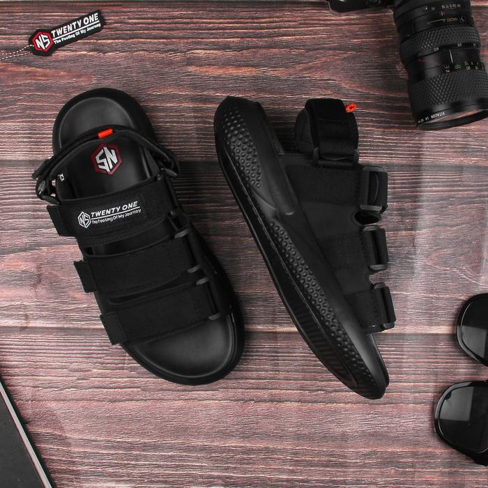 Sandal Gunung Pria Premium Terbaru Distro Bandung Sendal Aesthetic 100 PERSEN Original By Ns.Twenty One - Fuzi Hitam Sol Putih