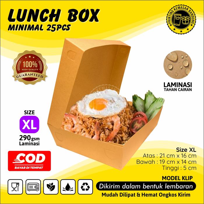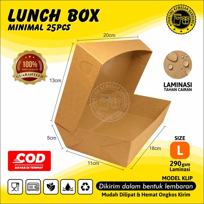 25 PCS KOTAK MAKAN KERTAS PAPER LUNCH BOX MAKANAN KRAFT GROSIR 290GSM - UKURAN L, PER 25 PCS