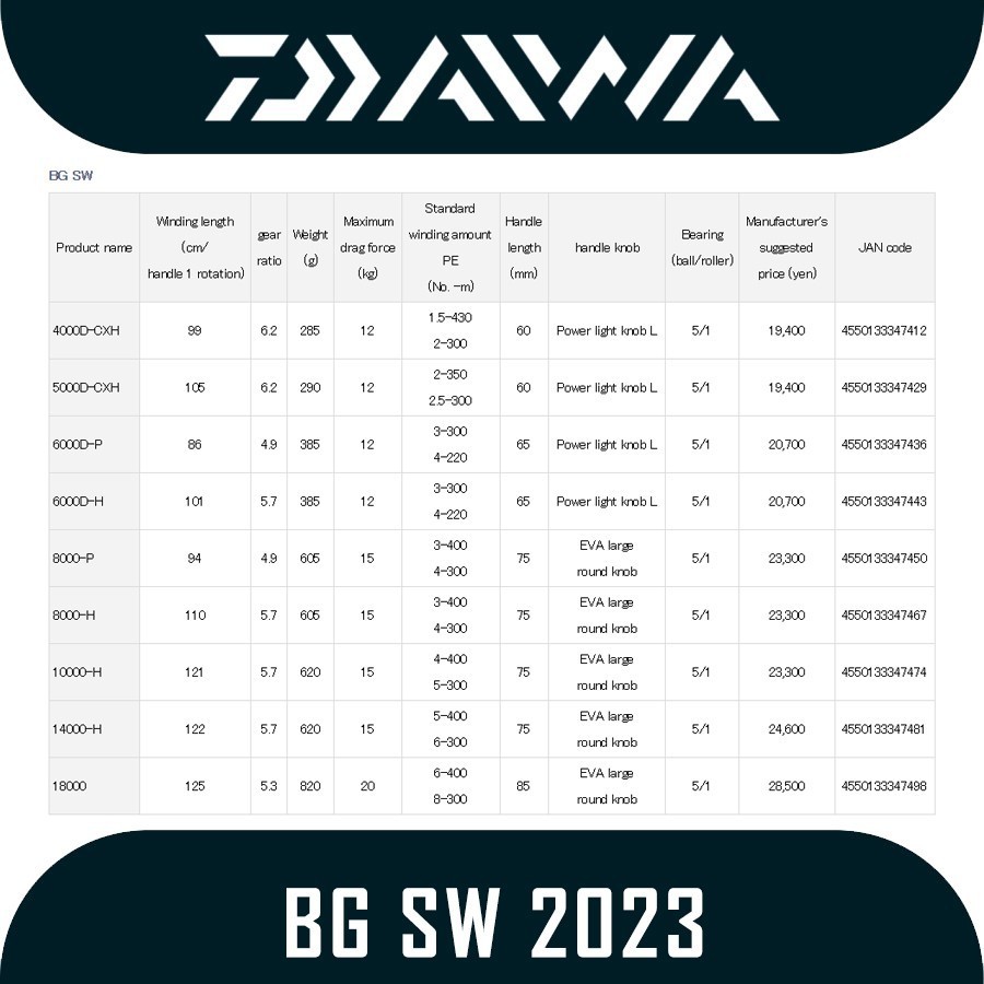 Reel Spinning Daiwa BG SW 2023 |4000D-CXH|5000D-CXH|6000H|8000-H|8000P|