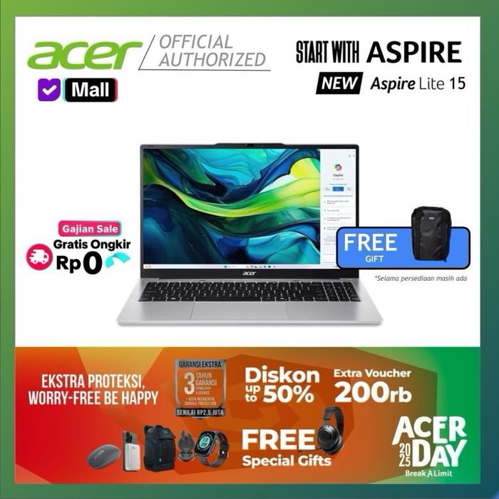 GAJIAN SALE ACER ASPIRE LITE 15 AL15-42P-R50P RYZEN 5 7430U 16GB8GB 512GB SSD 15" IPS FHD W11H OH2024 SILVER NX.D30SN.002 - 8GB
