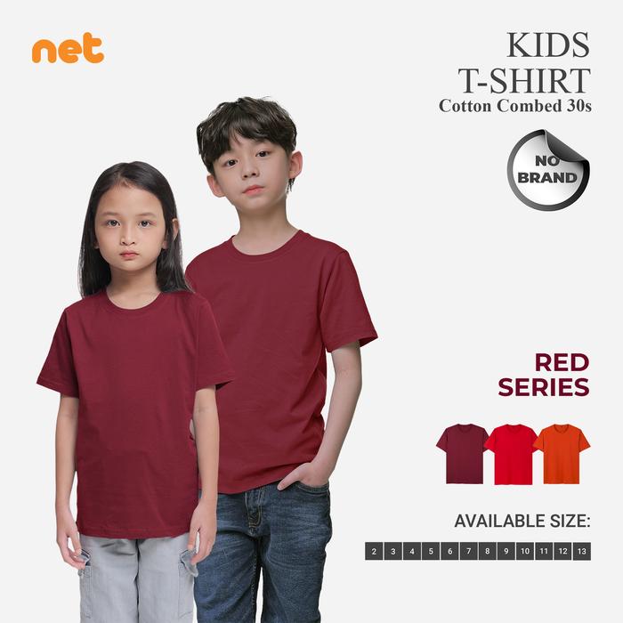 Kaos Polos Anak Cotton Combed 30S Kids Lengan Pendek Oneck Reguler Fit Basic T-Shirt Unisex Umur 2-13 Tahun Red Series -