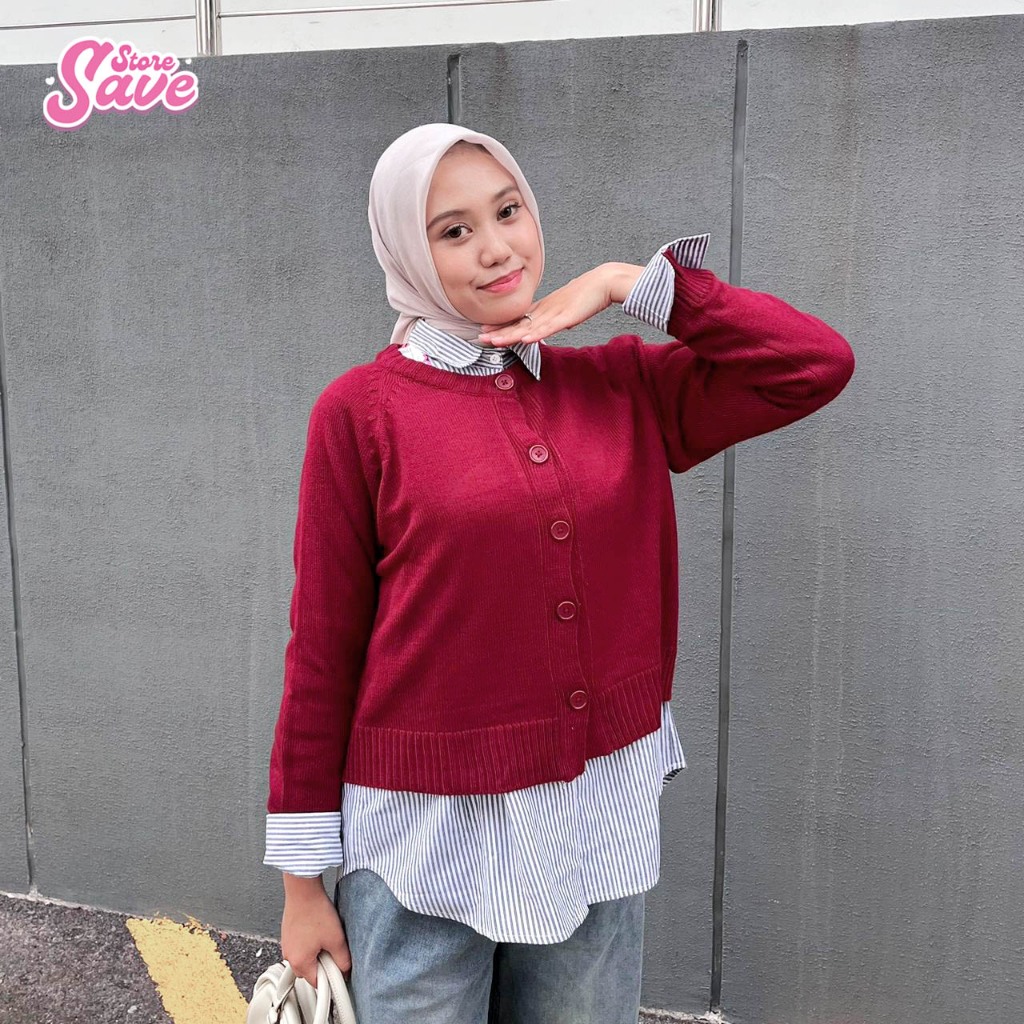 Gaury Cardigan Knit Garis-Garis Rajut Wanita