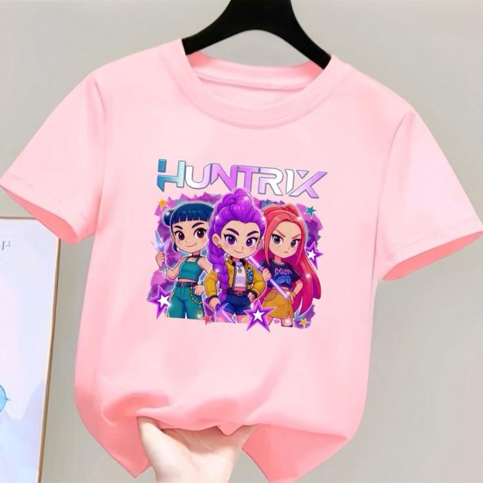 Kaos Anak Unisex Laki-Laki Dan Perempuan Ideal 2-12 Tahun Motif Demon Hunters Huntrix Baju Fashion Gambar - Merah, S 2-