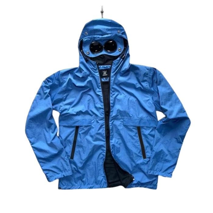 Jaket Goggle Nylon Parasut Wanita/Pria - Biru - Bomber, Distro, Outer, Zipper, Fleece, Parka, Nyaman Kantong Motor Outdo