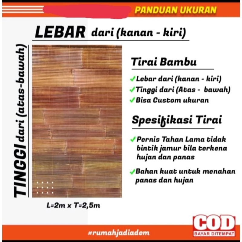 TIRAI BAMBU PLITUR & VERNIS 2X2 METER LENGKAP TALI PENGGULUNG DAN RING KEREKAN SEMUA UKURAN LEBAR KALI TINGGI