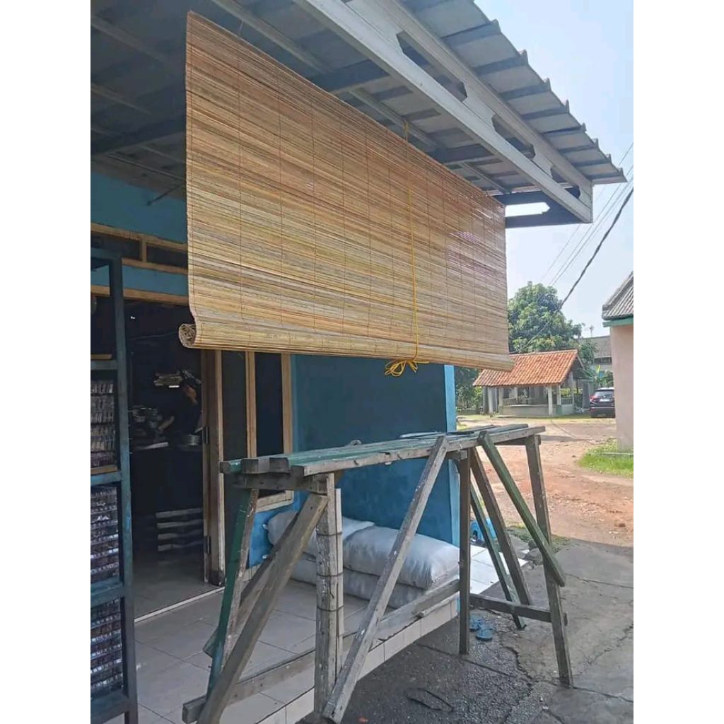 TIRAI KREY BAMBU SAWIT UK L 2,50M×T 2,50M PLITUR LENGKAP TALI PENGULUNGAN