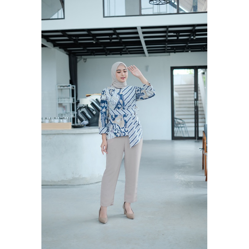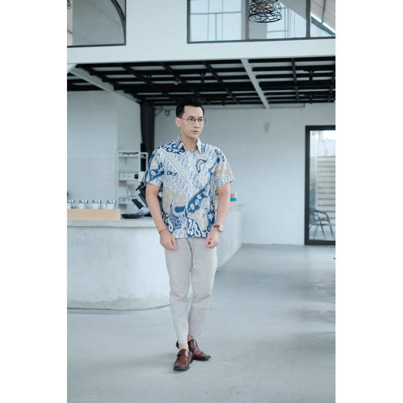 Brawee Baju Batik Couple Pria Wanita Blus Batik Couple Kerja Kejora Biru