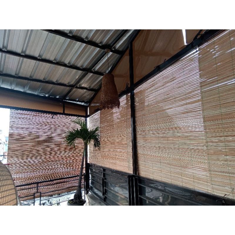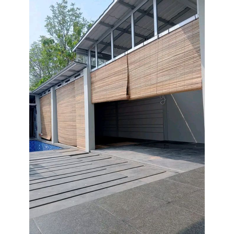 tirai bambu gulung outdoor lengkap tali+kerekan