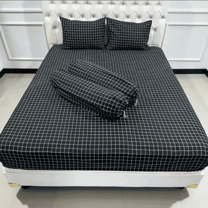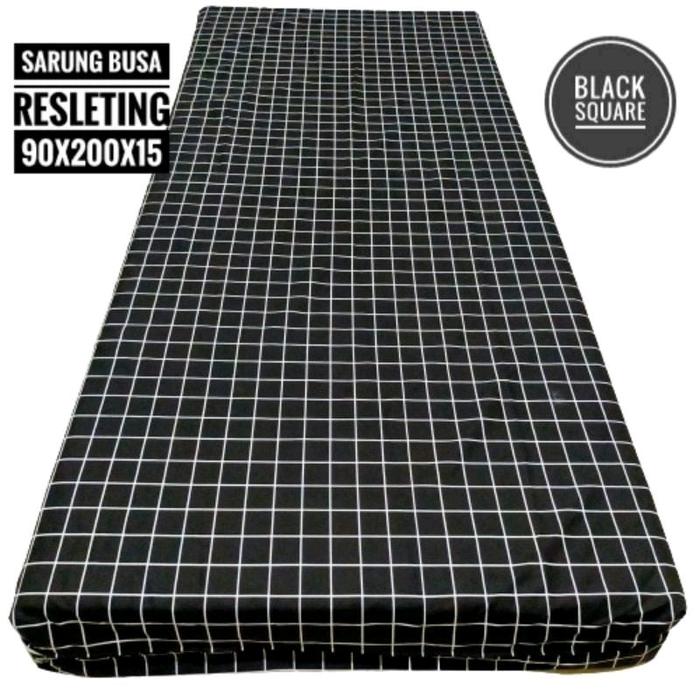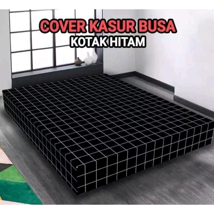 Sarung Kasur Busa Resleting Motif Kotak Hitam Bahan Kain Katun Poliester No.1 180X200X20Cm Motif Pria Perempuan Nyaman A