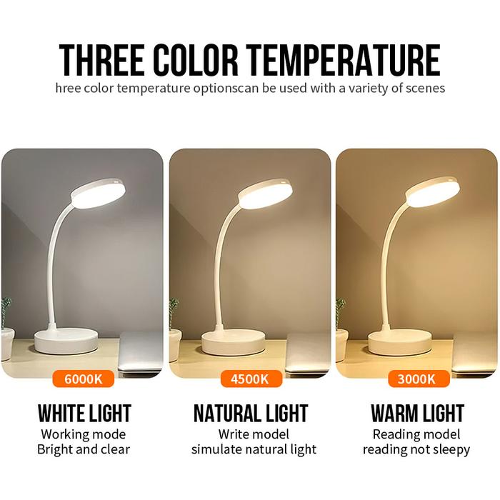 Lampu Belajar Tricolour Sentuh 3 Warna Tempat Pulpen Baca Meja Kerja Duduk 2000Mah Lampu Tidur Wireless Lampu - Putih