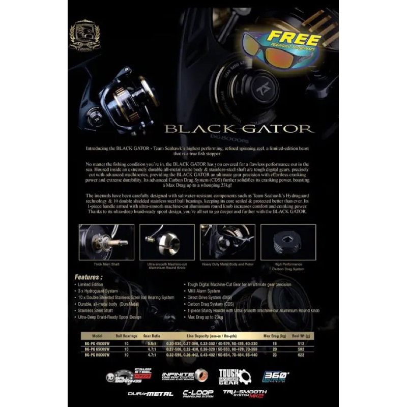 reel spinning SEAHAWK BLACK GATOR SW 3500/4500/6500