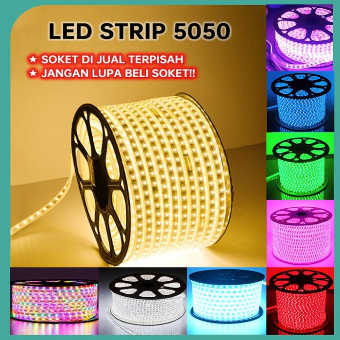 Lampu Led Strip 5050 Smd Meteran Per Meter Ac 220V Outdoor Indoor Hias - Klem, Mteran Tnpsoket