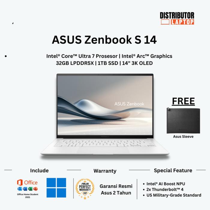 ASUS ZENBOOK S14 OLED UX5406SA INTEL CORE ULTRA 7 RAM 32GB 1TB SSD 14 3K OLED - WHITE