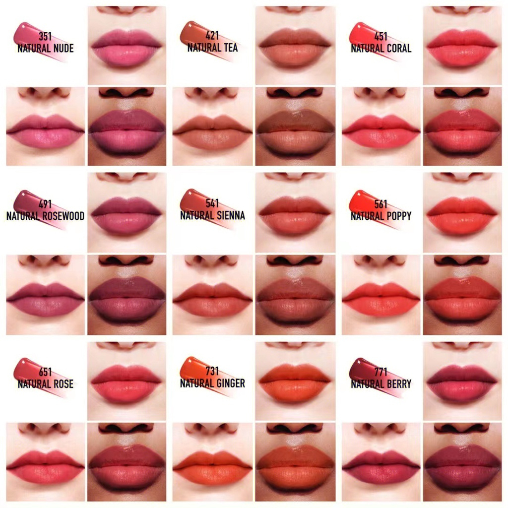 251 Natural Peach, 351 Natural Nude, 421 Natural Tea, 541 Natural Sienna, 651 Natural Rose, 771 Natural Berry