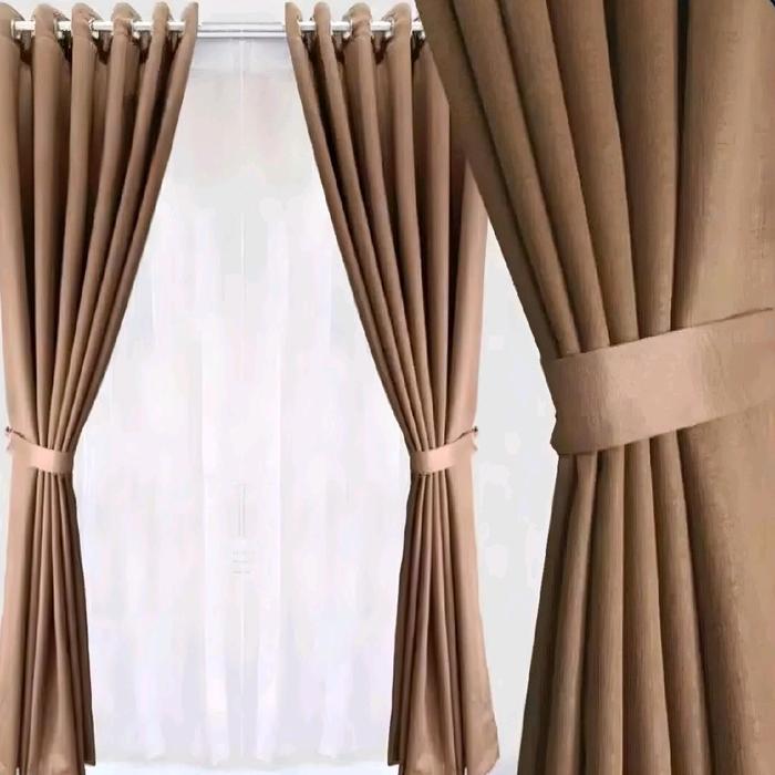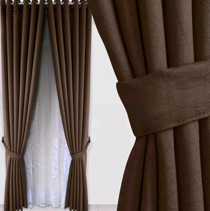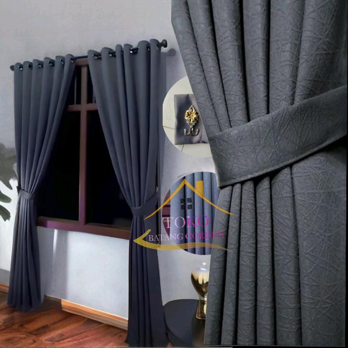 Gorden Blackout Embos Corak Sapron Jendela - Abu Tua+ Cantolan Melati, 150Cm