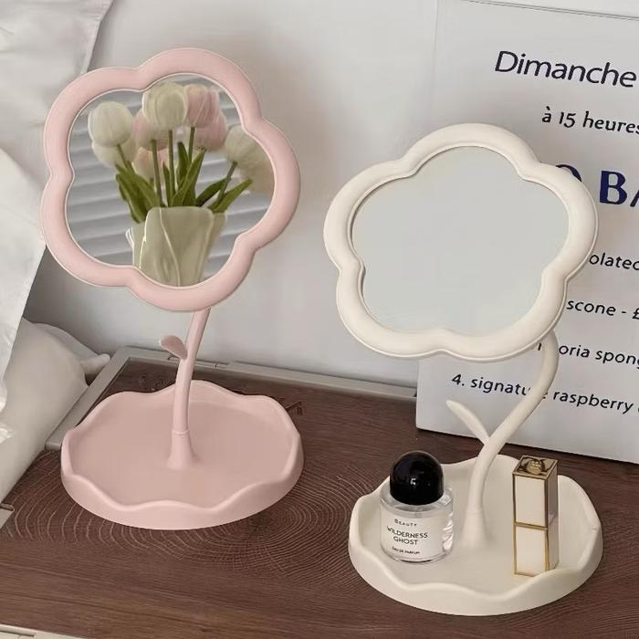 (Sp) Cermin Bunga Stand Make Up Rotating / Mirror Aesthetic Standing Flower Kaca Meja Rias Serbaguna - Kuning