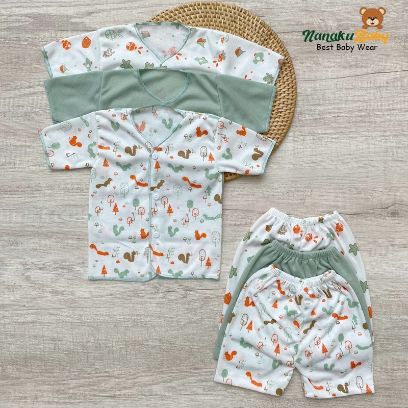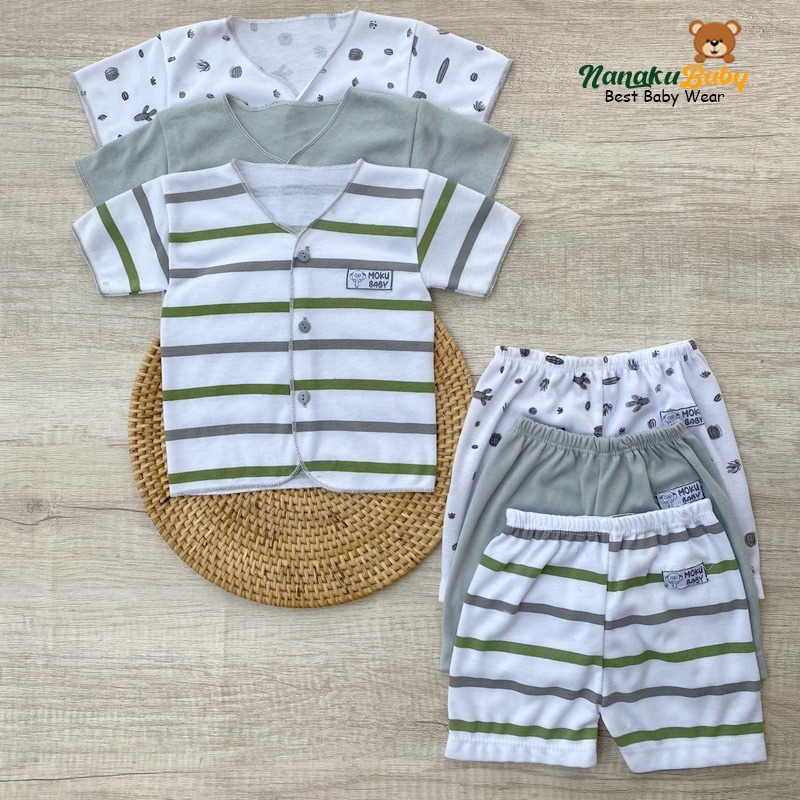 NANAKU BABY - ISI 6 PCS BAJU CELANA BAYI BARU LAHIR SETELAN PENDEK NEWBORN USIA 0-3 BULAN