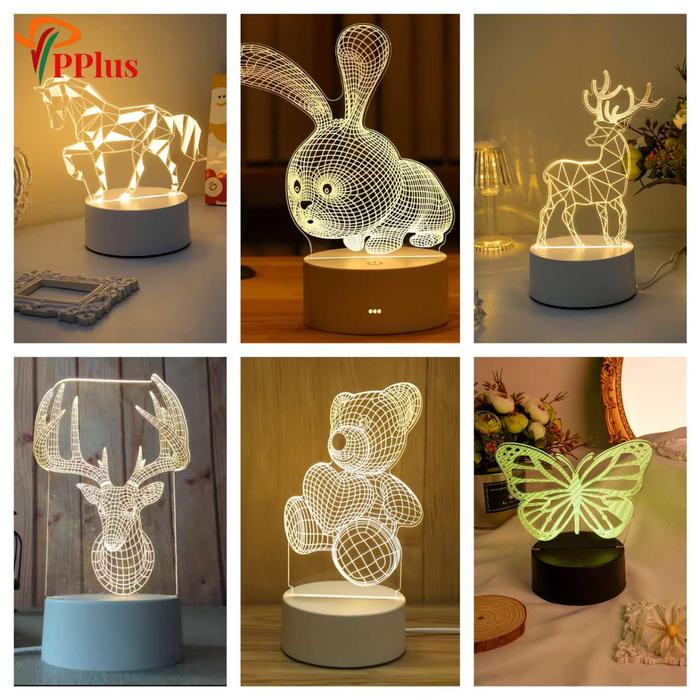Pplus ( Hangat)Lampu Akrilik 3D /Steker + Sakelar / Warna Keren Lampu Kamar Aesthetic / Lampu Malam Led / Lampu Tidur Ae