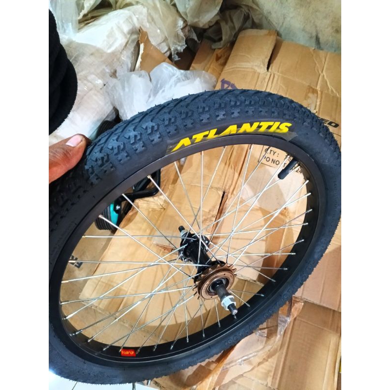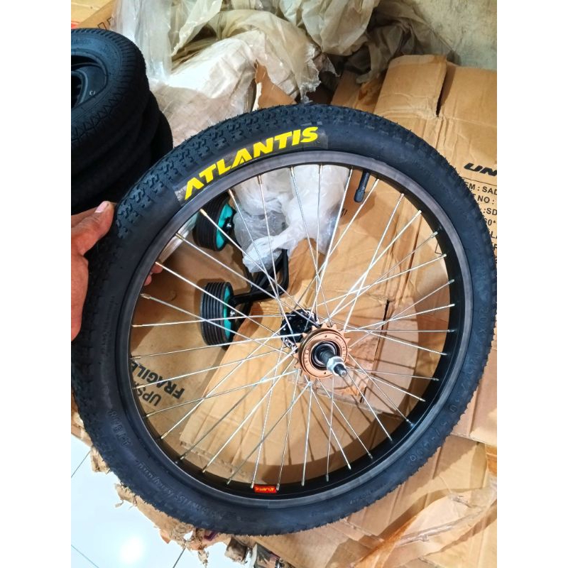 Velg velk sepeda ukuran 20 inc bmx bagian belakang lengkap dengan ban dan gir