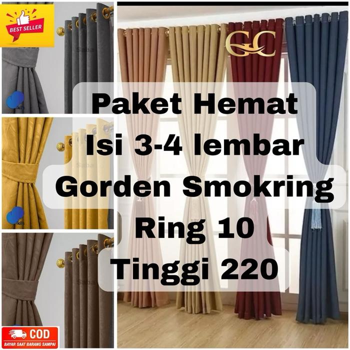 Promo Hemat Gorden Isi 3 & 4 Pcs Gorden Jendela Dan Pintu Smokering 10 Minimalis Ukuran Tinggi 220 Curtain Kain Katun E