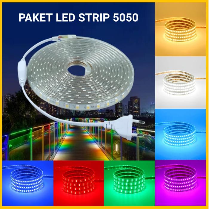 Meteran Lampu Led Strip 5050 Smd Waterproof / Paket Lampu Led Strip Lengkap Tinggal Colok Biru Hijau - Biru, 1Meter+Col