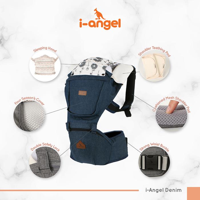 I-Angel Denim Solid – Gendongan Bayi Hipseat Depan