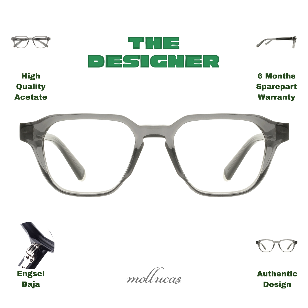Mollucas - The Designer - Wakatobi Charcoal - Gratis Lensa Minus/Plus/Silinder Anti Radiasi - Kacamata Pria/Wanita