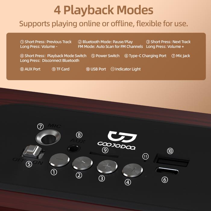 Goojodoq Ab4089 35Cm Bluetooth 5.3 Soundbar Hd Sound Quality 4 Playback Modes Classic Dual Speaker - Bright Red