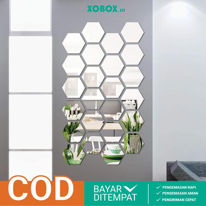 Stiker Cermin Dinding Anti Pecah Cermin Kaca Acrylic Hexagonal Dekorasi Ran D5005