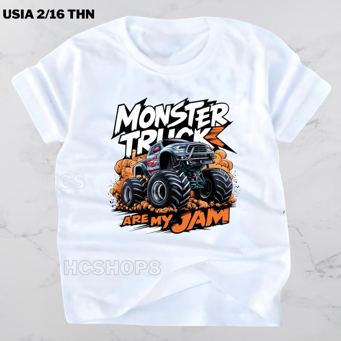 Kaos Anak Laki Laki Perempuan Monster Truck Usia 2-16 Tahun Cewek Cowok Cotton Katun Fashion - Maroon, S 2-3Tahun