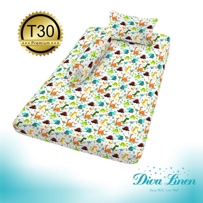 Sarung Kasur Busa Resleting Anti Lecek Super Nyaman - Diva Linen Motif Small Dino - 90X200 Tinggi 15Cm
